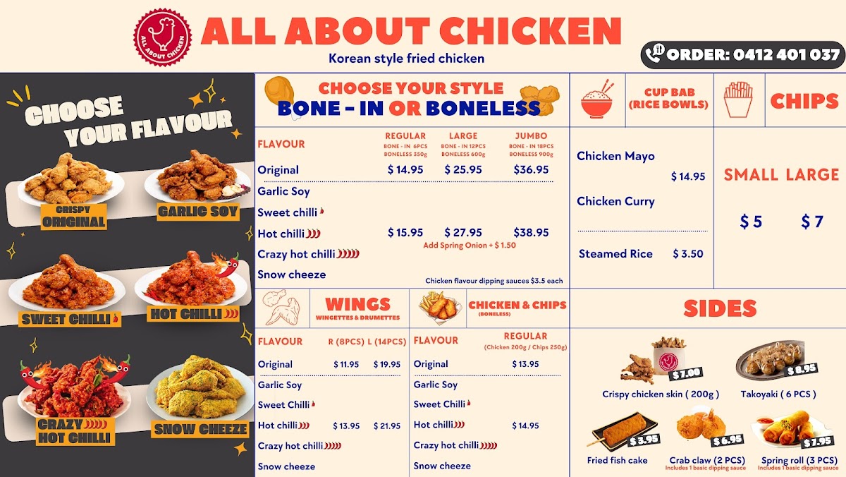 In conclusion, All About Chicken isn't just a restaurant; it's a celebration of bold flavors and comforting community. With an array of dishes designed to please both the timid and audacious palettes, this establishment is a must-visit for anyone in search of outstanding chicken in New South Wales. Treat yourself to a flavor-packed meal—you won't regret it!